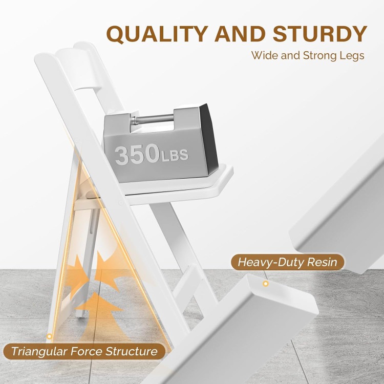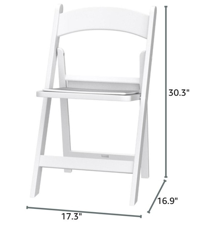 - White Resin Plastic Folding Chair with Padding Seat Weight Capacity to 350
